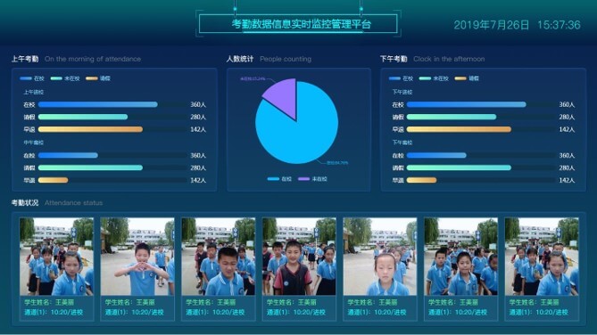 智能考勤平台系统以人脸识别算法技术为核心,将人脸识别硬件设备与考勤管理系统平台相结合,无缝对接现有门禁系统,进行门禁考勤二合一轻松管理,从而实现学校考勤工作的高效智能化管理。